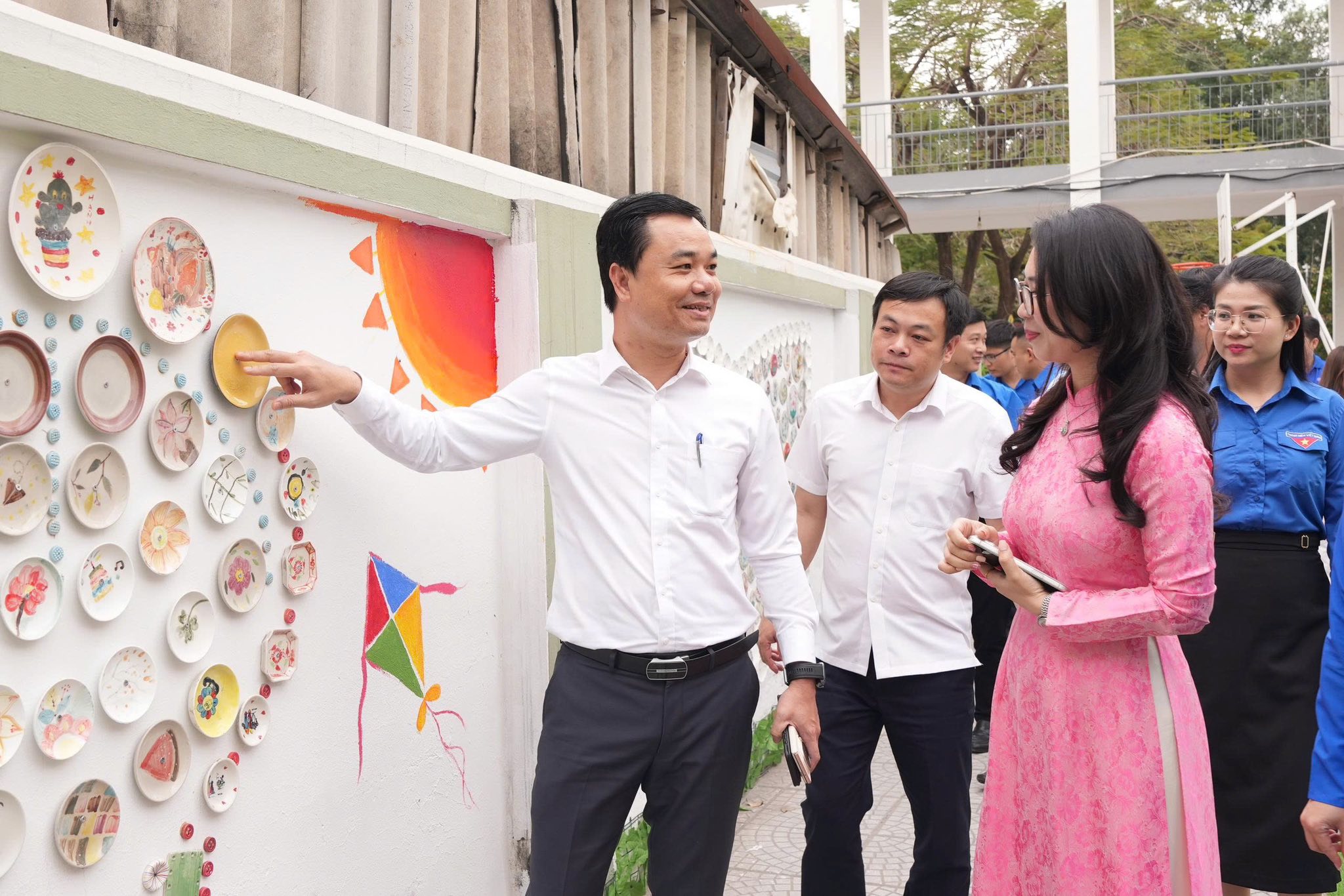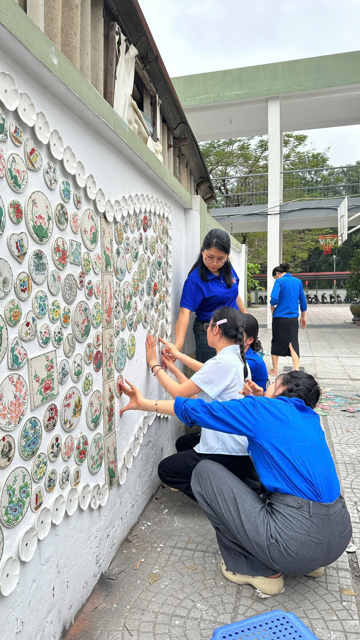 🌷Nổi bật trong công trình là những bức tranh gốm độc đáo được ghép từ hàng nghìn chiếc đĩa sứ do chính tay thầy cô và học sinh sáng tạo.