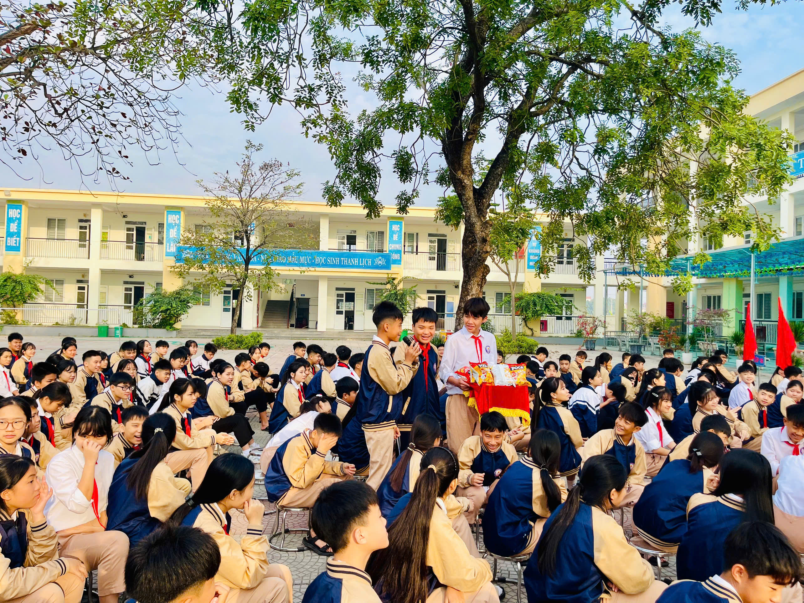 Sau đó, lớp 7B đã tổ chức phần hoạt động nghe nhạc, đoán tên bài hát. Các bạn học sinh các lớp sôi nổi tham gia và nhận được những phần thưởng hấp dẫn.