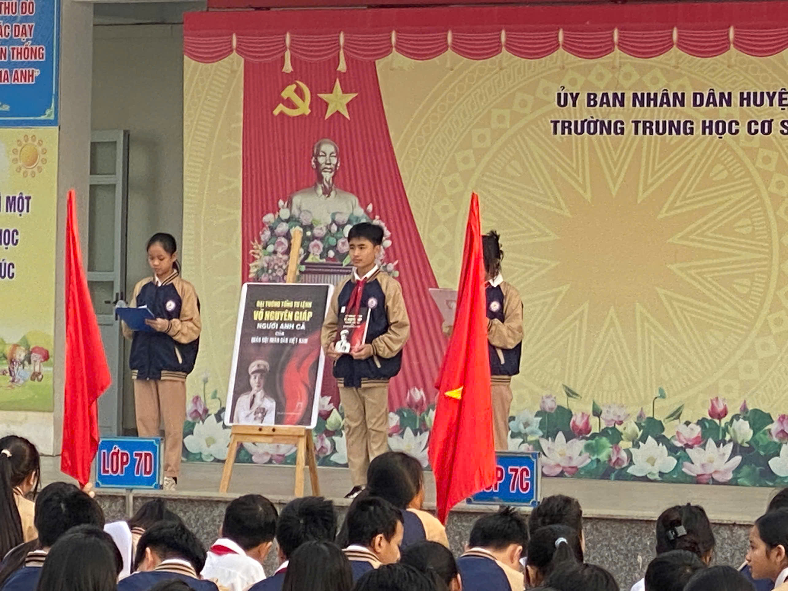 Hoà chung không khí chào mừng Ngày thành lập Quân đội nhân dân Việt Nam và ngày Hội quốc phòng toàn dân. Trong chương trình giới thiệu sách ngày hôm nay chúng em xin trân trọng gửi tới các thầy cô giáo cùng toàn thể các bạn học sinh cuốn sách mang tựa đề “Đại tướng tổng tư lệnh Võ Nguyên Giáp người anh cả của Quân đội nhân dân Việt Nam”.
