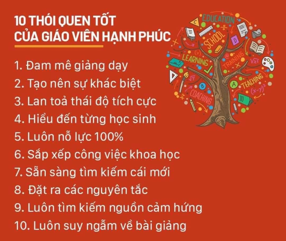 Sẽ còn nhiều những thói quen khác nữa để tạo nên một giáo viên hiệu quả nhưng những điều trên đây là những điều mà tôi cho là quan trọng nhất. Rất nhiều đồng nghiệm cũng sẽ có những kinh nghiệm và thói quen hiệu quả khác tùy theo điều kiện và hoàn cảnh của bản thân.