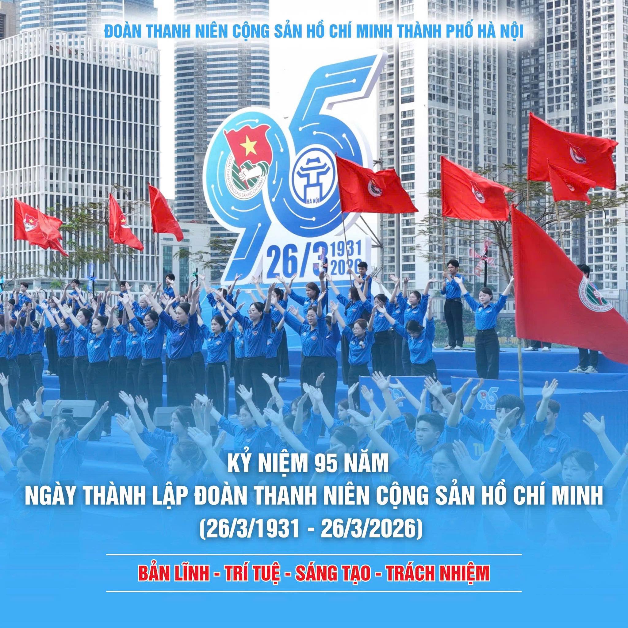Mừng Đoàn ta tròn 95 năm ngày thành lập! Thành đoàn Hà Nội xin gửi những lời chúc tốt đẹp nhất tới các thế hệ cán bộ Đoàn, các bạn đoàn viên, thanh niên Thủ đô.