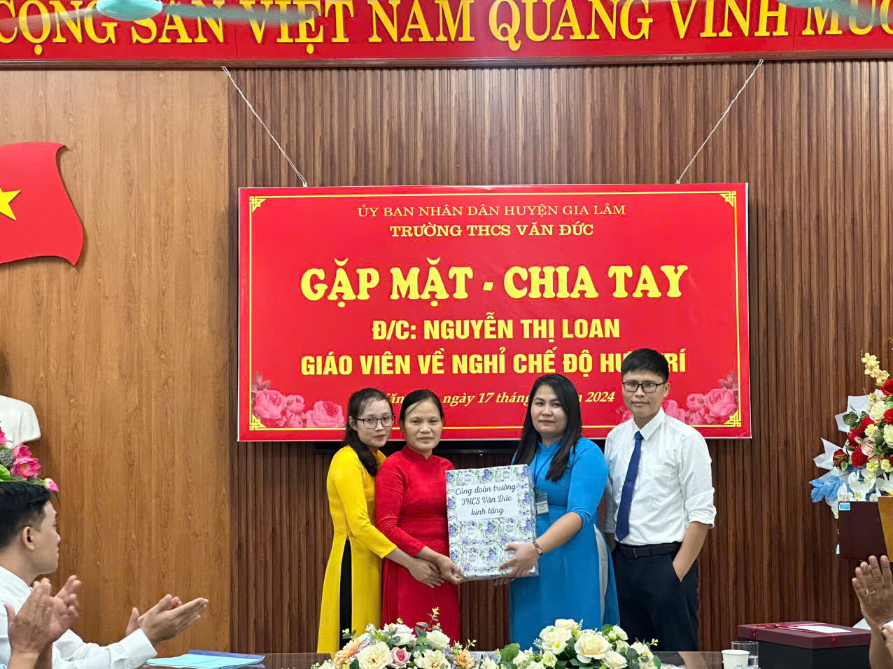 Những thành tích đạt được của nhà trường và công đoàn trong nhiều năm qua ngoài sự phấn đấu của tập thể nói chung còn có sự đóng góp đáng kể của Cô giáo Nguyễn Thị Loan. Thay mặt cho nhà trường và các thế hệ học sinh, chúng tôi ghi nhận và cảm ơn những đóng góp mà Cô đã cống hiến cho sự nghiệp giáo dục và đào tạo nói chung, cho thầy và trò trường THCS Văn Đức nói riêng.