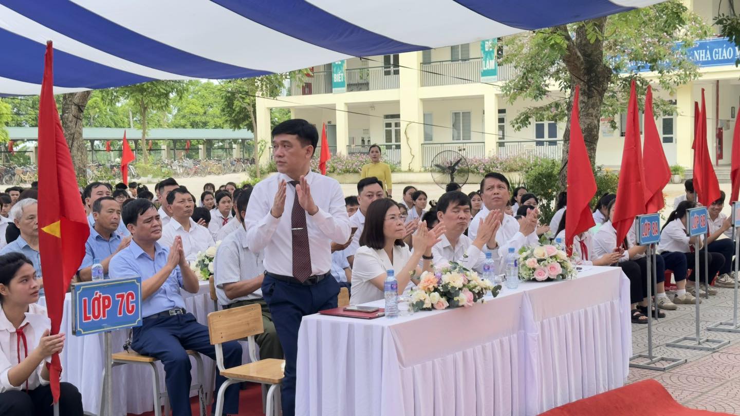 🎉🎉🎉Sau bài phát biểu tổng kết năm học và lời dặn dò học sinh lớp 9 đầy ý nghĩa, xúc động của Thầy giáo- Thạc sĩ Đặng Minh Huy – Bí thư chi bộ, Hiệu trưởng nhà trường là phần tuyên dương khen thưởng đã diễn ra trang trọng, ấn tượng nhằm vinh danh các tập thể, cá nhân đạt thành tích xuất sắc trong năm học vừa qua.